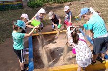 9-нчы номерлы өлкән төркем нәниләргә шефлык алып, аларны ком белән тулыландырырга булышабыз.
