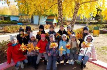 Весь сад стал золотым. Листья от лёгкого дуновения ветра слетают, искрясь пестрыми красками на солнце. Эту пору называют "Золотая осень". Самая яркая и красивая пора золотой осени приходится на начало октября. Ветер шумит листопадом. В парке и в саду можно собрать цветной гербарий из листьев самых удивительных раскрасок. Воспитанники группы N8 с большой радостью и восхищением собирали букет из разноцветных листьев. Дети радуются приходу осени.