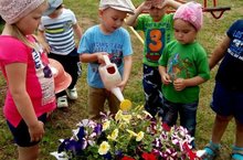 Воспитателями была проведена беседа о том, что за цветами нужно ухаживать, а именно: рыхлить, поливать.