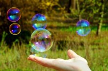 Мыльные пузыри - чудо. Они необыкновенные, прозрачные,легкие , тонкие и привлекают всех красивыми, радужными переливами. Пузырики летают от каждого дуновения.