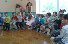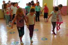 В детском саду прошли соревнования «Лесные тропинки» между подготовительными группами № 7 и № 9. Ребята совершили путешествие в сказочный лес: перелезали через бурелом, прыгали по кочкам, подлезали под упавшие деревья; были медвежатами, зайчатами и белочками. В напряженной борьбе победила дружба. И конечно не обошлось без творческих номеров. Ребята исполнили танец «Хорошее настроение» и песню «Я, ты, он, она».