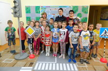 Сегодня наш детский сад посетили начальник отделения Елабужского района, ГБУ «Безопасность дорожного движения» Набережно Челнинского территориального управления Гришина Ф.Х. и инспектор по пропаганде ОГИБДД отдела МВД России по Елабужскому району, Старший лейтенант полицииКаюмова Г.Ф. Они провели увлекательное мероприятие в кабинете ПДД «Иди по улице с умом» на котором дети повторили дорожные знаки и закрепили сигналы светофора, в конце занятия гости показали, уже в музыкальном зале, увлекательные мультфильмы «Для чего нужны знаки», «Велосипед твой друг» и тд. Дети группы №8 показали хорошие знания по ПДД. За что были награждены пособиями играми и книгами на русском и татарском языках. Дети были довольны и обещали использовать полученные знания в повседневной жизни.
