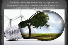 «Час Земли» – международная экологическая акция, инициированная WWF в 2007 году, призывающая людей всего мира выключить свет и бытовые электроприборы на один час в знак неравнодушия к будущему планеты. Наш детский сад не остался равнодушным и тоже присоединился к акции, и на один час отключил архитектурно - декоративную подсветку зданий, сооружений, освещение жилых помещений, электрические устройства не связанные с обеспечением безопасности жизнедеятельности граждан.
