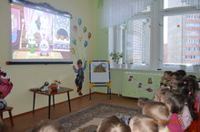 В нашем детском саду для младших во время режимных моментов в кабинете татарского языка дети смотрят мультфильмы на татарском языке. Дети очень любят смотреть сказки «Глупый зайчонок», «Белый дед», «Чукмар и Тукмар”, “Забавный ученик”.