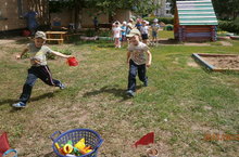 В детском саду прошло спортивное развлечение "Весёлые старты" между группами №12 и №13. Воспитатели групп привлекаюк детей к ЗОЖ через спортивные развлечения. У детей было создано радостное, бодрое настроение. Дети развивали смелость, быстроту, внимание, организованность поддерживали итерес к различным видам игр, эстафет: "Проведи мяч", "Эстафеты с обручами", "Перетягивание каната", и тд. Дети остались довольны и конечно же победила ДРУЖБА.