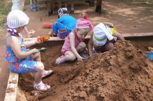 Возле сада, на площадке, как цветной горох, ребятки, в ярких шапках, и игрушки на песках! 02.07.2015
