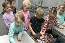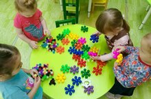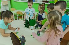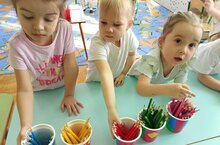 Воспитанники младшей группы занимается развитием умения узнавать и называть цвета. Развивают мелкую моторику пальцев рук.