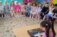 Балалар бакчасында тәрбияләнүчеләр классик музыканы музыка дәресләрендә генә түгел, ә дәресләрдән буш вакытта да өйрәнәләр. Мәктәпкә әзерлек төркемендә булачак пианистка Корбанова Алинә бар. Ул фортепиано музыка дәресләренә йөри. Бүген балалар зур кызыксыну һәм игътибар белән Алинәнең музыка коралында уйнавын һәм үз көйенә җырлавын тыңладылар.