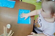 На прогулке дети первой младшей группы наблюдали за белоснежными деревьями. Восторженные впечатления детей легли на синь альбомных листов. Чудесные ладошки изобразили заснеженные деревья. Как красиво зимой!