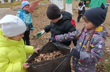 Көз... Актив чәршәмбе һәм өмәләр үткәрергә вакыт җитте - балалар бакчасы территориясен кыш җитәр алдыннан тәртипкә китерергә. Бу эштә тәрбияләнүчеләр үзләренең тәрбиячеләренә актив ярдәм итәләр. Бүген өлкән группа балалары да өмә ясадылар һәм тәрбиячеләр белән бергә үз төркем участогы территориясеннән яфраклар җыйдылар.