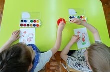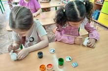 Халык традицияләрен дәвам итеп, без уйнап кына калмыйбыз, ә сәнгать иҗаты белән дә шөгыльләнәбез - мисал, өлкән яшьтәге балаларның дымков рәсеме.