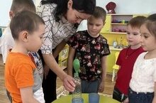 С детьми подготовительной группы провели опыт, в котором бутылка с воздушным шариком погружается в горячую и холодную воду. В результате шарик надувается в горячей воде и сдувается в холодной.