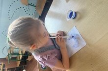 Сегодня в группе №5 прошло занятие «Снег на деревьях». Дети нестандартным образом, с помощью трубочки, изобразили снежный покров на деревьях. Такой вид рисования помогает укреплению дыхательной системы, развивает речевой аппарат и тренирует концентрацию внимания и координацию. Занятие прошло очень весело, дети были увлечены процессом.