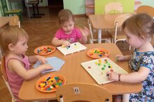 Без балалар белән вак моториканы үстерү өстендә даими эш алып барабыз. Кечкенә балалар өчен вак моториканы көн дә ныгытып торырга кирәк,чөнки ул баланың сөйләме өчен әһәмиятле.Без бүген мозайка белән таныштык.Балалар бик теләп,кызыксынып мозайка белән уйнадылар.