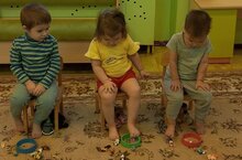 В первой младшей группе № 1 мы провели игру “Ловкие пальчики” с целью укрепления здоровья детей. В ходе игры дети брали пальцами ног маленькие игрушки от киндер сюрприза и складывали их в кольцо. С помощью таких специальных упражнений можно добиться того, чтобы не было плоскостопия у детей. Эта игра очень понравилась ребятам!