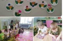 Во второй младшей группе № 6 прошло занятия по рисованию на тему "Узорчатый платок". Дети познакомились с национальными орнаментами татарского народа "тюльпан", "лист". Закрепили навыки правильного размещения этих узоров на круглом листе бумаги и их приклеивания при помощи клея. -
