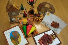 Көз- матур вакыт, ул кызыклы табигать материалларына бай чор: төрле төстәге күркәләр һәм яфраклар белән бизәлгән. Без табигатьтәге үзгәрешләрне күзәтәбез, көзге табигатьнең матурлыгына сокланабыз. Бу вакыт иҗатка ия. Табигый материал белән эшләү баланы табигать белән якынайту, аңа сакчыл, кайгыртучан мөнәсәбәт тәрбияләү, беренче хезмәт күнекмәләрен формалаштыру, эстетик зәвыкны үстерү өчен зур мөмкинлекләр тудыра. 4 нче кече яшьтәгеләр төркемендә «Көз бүләкләре» дигән темага кул эшләре күргәзмәсе узды. Күп кенә ата-аналар күргәзмәдә катнашырга теләк белдерделәр. Әти-әниләр балалар белән бик тырыштылар, үзләренең фантазияләрен, осталыкларын күрсәттеләр. Күргәзмәдә күркә, ботаклар, яфраклар, мүк, орлыклардан ясалган кызыклы эшләнмәләр тәкъдим ителде. Нәтиҗәдә, оригиналь эшләнмәләр килеп чыкты.