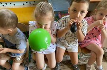 Сегодня в нашем детском саду “День воздуха”. Мы с ребятами 5 группы провели разные опыты и узнали что мы не можем увидеть воздух. С помощью коктельных палочек делали пузырьки. Надували разноцветные шары. Сделали из бумаги “Чудо – веер”