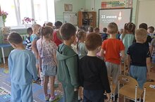 Сегодня в нашем детском саду прошёл День памяти и скорби. Ребята вспомнили основные события той страшной войны. Педагоги и воспитанники почтили минутой молчания память воинов-защитников, павших за Родину на полях сражений. День памяти и скорби еще раз напомнил всем присутствующим прописную истину - пока жива память об этом событии, пока жива в наших сердцах благодарность тем, кто отстоял честь, свободу и независимость Родины, наше государство будет сильным, независимым, а народ непобедимым.