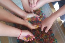 5 нче төркем тәрбияләнүчеләре тәҗрибә ясарга яраталар. Бу юлы балалар «Орбис»шарлары белән таныштылар. Алар бик матур, төрле төстә; салават күпере төсләре белән барлык чәчәкләре белән борыла. Иң элек балалар су шарлары күләмдә үзгәрүен күзәттеләр,аннары аларны тәлинкәгә чәчәкләр буенча урнаштырдылар һәм төрле рәсемнәр җыйдылар. Әлеге тәҗрибә ясау балаларга бик ошады.