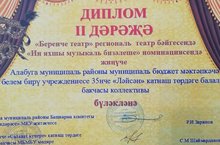 Бүген, 35 нче “Ләйсән” балалар бакчасының “Илхам” театр коллективы, Россиядәге театр елына багышланган “Беренче театр” региональ театр бәйгесендә катнашып, “Иң яхшы музыкаль бизәлеше” номинациясендә 2 нче дәрәҗә дипломга лаек булды.