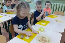 Основная цель акции – помочь зимующим птицам пережить холодный период, сохранив тем самым их численность и поддержав видовое разнообразие. Дети совместно с педагогом изготовили птичьи пряники из несолёного теста, с добавлением круп и зёрен, а затем развесили их на деревьях. Также ребята принесли лакомство в виде сала для синичек. Теперь ежедневно на прогулке дети проверяют и считают сколько птичек прилетело к их гостинцам. -