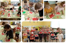 Дети младшей группы изготовили открытку "Звезда Победы" к приближающемуся празднику "День Победы".