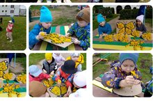 Дети средней группы сделали аппликацию-пятиминутку из живых цветов. Завянут одуванчики быстро, но ценен сам момент создания красоты!