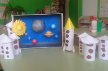 В подготовительной к школе группе №11 дети сегодня побывали в роли космонавтов, повторили знания о планетах, узнали о первом полёте человека в космос, оказались на космодроме, встретили инопланетянина, выполнили его задания и благополучно вернулись в детский сад.