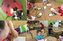 В небо улетает. (Божья коровка)Күп кара нокталы кызыл түгәрәк.Канатларын ача,күккә оча. (Камка)