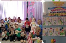 Сегодня средняя группа решила порадовать своих мам и бабушек необычным букетом, который нарисовали с помощью втулки. Поздравляем всех с Международным женским днем.