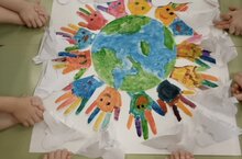 В преддверии Дня народного единства дети средней группы" Радуга "в доступной форме познакомились с историей праздника ,при рассматривании карты мира- узнали как велика наша Родина.В результате чтения и бесед ребята убедились, что мир и дружба были всегда, что не должно быть ссор, обид, что люди должны с детства быть дружными, уважать и беречь друг друга. Коллективно изготовили творческую работу под названием "Словно радуги цвета мы едины навсегда!" Вырезали, раскрашивали и приклеивали ладошки символизирующие разность народов, проживающих на огромной планете,а символ мира- сделали при помощи оригами.Все виды деятельности были направлены на воспитание патриотических чувств, доброжелательности и желания помочь д руг другу.
