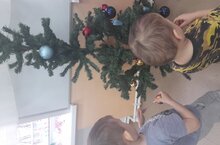 Балалар чыршыны бизәү процессына һәрвакыт шатланып кушыла, менә бүген дә, икенче кече төркем балалары белән бергәләп, яшел гүзәллекне бизәдек.
