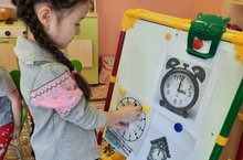 Математика дәресендә 9 нчы мәктәпкәчә яшьтәге балалар төркеме сәгать белән танышты. Алар сәгать төрләре: стена сәгате, ком сәгате, кул сәгате барлыгын белделәр. Балалар сәгать битлеге сүзе белән таныштылар, сәгать, минут, секунтны аерырга өйрәнделәр.