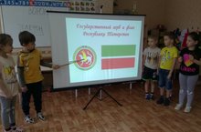 Сегодня старшей группы № 11 с детьми была проведена образовательная деятельность по теме «Моя Родина-Татарстан», посвященная 100 ТАССР. В ходе занятия дети познакомились с природными богатствами республики, прослушали аудиозапись с гимном Татарстана, рассмотрели иллюстрации герба и флага Республики, национальные костюмы, головные уборы и обувь, татарские блюда. Республика Татарстан многонациональная республика, во время занятия детям объяснили, что нужно жить дружно, относиться друг к другу с уважением.
