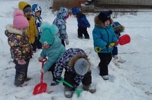 Приход зимы, а особенно снег мы так сильно ждали. Не смотря на то,что мы еще маленькие, сразу взялись за работу, помогли чистить снег.Очень скоро у нас и горка будет. Главное чтобы снег во время был.