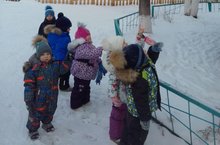 Сегодня воспитатели младшей группы № 3 вместе с детьми смастерили кормушку для птиц из бросового материала. Уточнили какие птицы летают вблизи участка. Как называются птицы которые остаются зимовать? Обсудили с малышами почему зимующих птиц надо подкармливать и чем? Во время прогулки развесили кормушки на участке. Высыпали приготовленный корм (семечки, хлебные крошки). Наблюдали какие птицы прилетают к кормушке. Рассматривали птичьи следы на снегу.