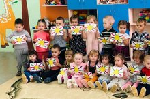 Бүген 5 нче төркем тәрбияләнүчеләре берничә өлештән торган, төрле формадагы предметларны җәю, төзү һәм ябыштыруны дәвам иттеләр. Клейстерны пумалага пөхтә җыя, клеенкага әзер формаларны юа, салфетка белән файдалана белүләрен ныгыттылар. Аппликация белән кызыксынуны, эшне ахырына кадәр җиткерү теләген үстерделәр.
