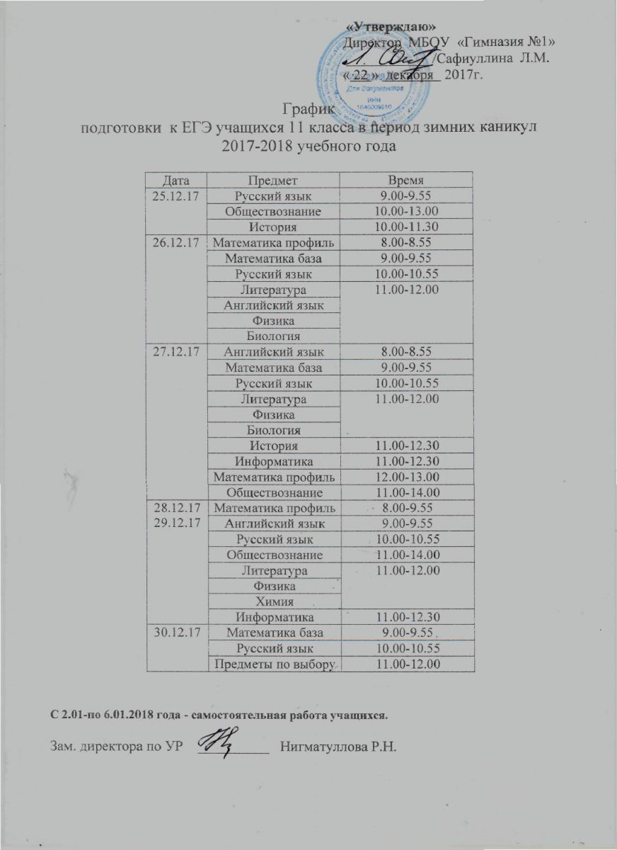 С 25 декабря, во время зимних каникул, в гимназии будут проводиться занятия по подготовке к ГИА 2018 для обучающихся 9 и 11 классов