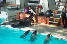 Ребята и взрослые были в восторге от представления. Они получили позитивные эмоции наблюдая за тем, как дельфины рисовали картину, танцевали, пели, выполняли различные трюки. Ребята познакомились с самым маленьким новорожденным дельфином –Ирбисом. Особенно счастливым был Данис, ученик 2-б класса, у которого в этот день был день рождения.