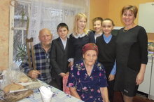 Посетили пенсионера, принесли гостинцы, пили чай, фотографировались. Александра Афанасьевна недавно отметила 95 летие. Рассказала о своей жизни. До пенсии работала учителем в школе глухонемых. Показала фотографии. Дети исполняли для неё песни, рассказывали стихи. Сын Владимир Николаевич играл на баяне, он ухаживает за матерью.