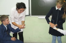 В рамках недели медицинских знаний в 4 А классе состоялась беседа с медицинской сестрой гимназии, во время которой дети узнали как оказывать первую медицинскую помощь при травмах и порезах.