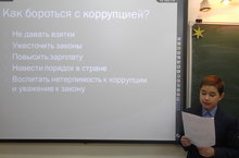 В гимназии прошли мероприятия, приуроченные Международному Дню борьбы с коррупцией: классные часы «Коррупция и методы борьбы с ней», «Нет! – коррупции в стране», встреча с адвокатом Елабужского филиала коллегии адвокатов Тугульской Э.В. на тему «Знаешь ли ты закон?», просмотр и обсуждение видеороликов и презентаций, проведение тематической игры. Ребята подготовили выступления об истории возникновения коррупции и методах борьбы с ней, провели анкетирование.На общешкольном и классных родительских собраниях данный вопрос тоже был поднят в очередной раз администрацией гимназии и классными руководителями. Также перед родителями выступили представители прокуратуры, полиции и наркоконтроля.