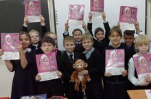 На урок английского языка во 2 классе пришел любимый герой обезьянка Сhuckles, которой они показали всё чему научились за 3 месяца.