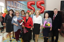 5 октября МБОУ «Гимназия №4» отметила свой 55-летний юбилей! С днем рождения старейшее учебное заведение города пришли поздравить представители администрации Елабужского муниципального района, подшефного предприятия НГДУ «Прикамнефть», председатель совета профсоюзных организаций, ветераны педагогического труда, выпускники разных лет, родители обучающихся.К юбилейной дате в гимназии дружно готовился весь коллектив: акция «55 пятерок к юбилею для обучающихся 2-11 классов»- (50 обучающихся стали победителями), яркие фотозоны, юбилейный выпуск школьной газеты «Гимназист», видеоролик «Юбилейный репортаж», памятные подарки, сделанные руками детей, яркие творческие номера от работающего педагогического коллектива, школьного хора «Радуга», хореографического коллектива «Карамель», победителей школьного КВН.Приятно было получить творческие поздравления от педагогов ДМШ №1и ДМШ№2.Листались страницы 55-летней истории и было очень отрадно, что на протяжении всего периода работы нашей школы традиции не только сохранялись, но и приумножались. Об этом говорили все- и почетные гости, и ветераны, и директор гимназии Е.Г. Чегодаева.Традиционно был дан школьный звонок первоклассниками 1964 года, который пригласил на сцену выпускников разных лет.Много теплых слов было сказано в адрес ветеранов педагогического труда, работающего коллектива. Ярким праздничным аккордом стал юбилейный торт, свечи которого задули директор гимназии, первоклассники 1964 года и победители акции «55 пятерок к юбилею» под девиз 25-летней давности «Нет школы лучше в мире, чем гимназия №4!»МБББУ 4 нче гимназия 5 нче октябрь көнне үзенең 55 еллык юбилеен бәйрәм итте! Гимназиябезне шундый олуг бәйрәме белән тәбрик итәргә дип, Алабуга муниципаль районы администрациясе, шефларыбыз НГДУ «Прикамнефть» вәкилләре,профсоюз оешмалары советы рәисе, педагогик хезмәт ветераннары, төрле ел чыгарылыш укучылары, укучыларыбызның ата-аналары килде.Юбилейга гимназиябезнең бар коллективы да бердәм әзерләнде: “2-11 нче сыйныф укучылары өчен гимназиябез юбилеена 55 бишле!” акциясе (50 укучы җиңүче булды), якты фотозоналар, “Гимназист”газетасының юбилей чыгыш номеры, “Юбилей репортажы” видеоролигы, укучыларның үз куллары белән ясалган истәлекле бүләкләр, эшләп торучы коллектив вәкилләре, мәктәп хоры “Салават күпере”, “Карамель” хореографик коллектив, мәктәп КВНы җиңүчеләре башкаруында иҗади чыгышлар килгән кунакларга тәкъдим ителде.Беренче hәм икенче номерлы БММ коллективы башкаруында иҗади тәбрикләү алу да күңелгә бик ятышлы булды.Шушы еллар дәверендә мәктәптә яшәп килгән матур гадәтләрнең сакланып кына калмыйча, тагын да киң колач алуын күрү бик куанычлы иде. Бу турыда гимназиябез директоры Е.Г.Чегодаева да, ветераннарыбыз да, хөрмәтле кунаклар да бик куанып, теләп искә алды.Гадәттәгечә, 1964 нче елгы беренче сыйныф укучылары өчен кыңгырау шалтыравы төрле ел чыгарылыш укучыларын сәхнәгә дәште.Педагогик хезмәт ветераннары hәм әлегесе көндә эшләп торучы коллектив адресына атап, бик күп җылы сүзләр әйтелде , якты теләкләр теләнде. Иң якты бәйрәм аккорды юбилей торты булды. Аның шәмнәрен бердәм сүндерүчеләр 1964 нче елда гимназиябез бусагасына беренче тапкыр аяк баскан укучылар, “Юбилейга 55 бишле” акциясендә җиңүчеләр, гимназиябез директоры булды. Бу вакытта бердәм коллективны
