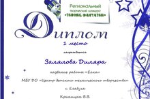 Диплом за 1 место в Региональном творческом конкурсе "Зимние фантазии" / "Кышкы фантазияләр" Региональ иҗади конкурсында 1 урын өчен диплом 18.02.2022