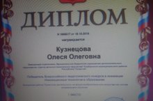 18 октябрьдә педагог Кузнецова О.О. Бөтенроссия педагогик конкурсында белем бирүдә инновацион технологияләр номинациясендә «үстерүче белем нигезе буларак дизайн нигезләре дәресләрендә проект эшчәнлеге»дигән конкурс эше белән беренче урынны яулады. Котлыйбыз!