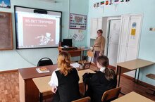 Мәктәптә ветераннар төркеме вәкилләре белән очрашу булды .Ушакова Л.В. һәм Белов Н.В. укучылар белән Батырлык дәресләре үткәрделәр, совет халкының Бөек Ватан сугышы елларында фронтта һәм тылда күрсәткән батырлыклары турында сөйләделәр.