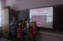 В рамка проведения республиканской акции "Жизнь без наркотиков" в пришкольном лагере продолжается большая работа. Для ребят в сельской библиотеке была оформлена выставка книг «Нет наркотикам!» . Библиотекарем проведена беседа на тему «Не влипни в историю». Для детей проведен конкурс рисунков на асфальте «Радуга детства». С большим удовольствием все дети приняли активное участие в тематической дискотеке «Мы здоровое поколение!».