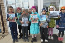 Учащиеся начальных классов провели акцию " Поджигая траву- ты поджигаешь свой дом!".. Дети распространили наглядную агитацию в магазинах, МФЦ, школе, листовки среди жителей села